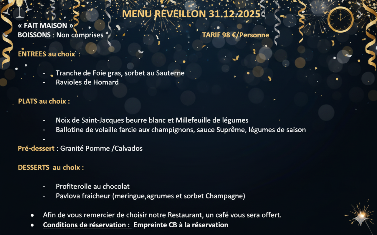 Venez célébrer la nouvelle année chez nous ! Nous vous invitons à partager un moment festif, gourmand et convivial pour accueillir 2026 comme il se doit.