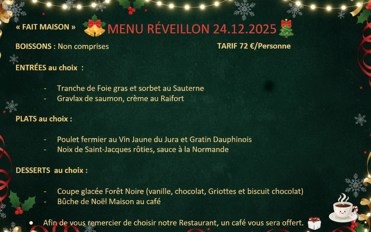 Menu du Réveillon – 72 €